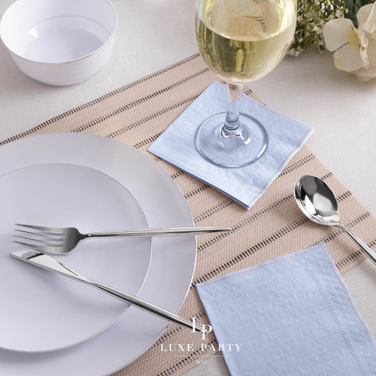 Ice Blue with Silver Stripe Paper Cocktail Napkins | 20 Napk: 20 Beverage Napkins - 5" x 5"