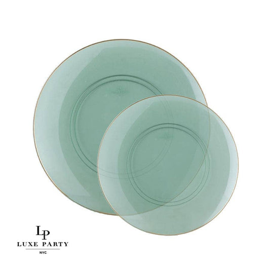 Round Green • Gold Plastic Plates | 10 Pack: 10.25" Dinner Plates