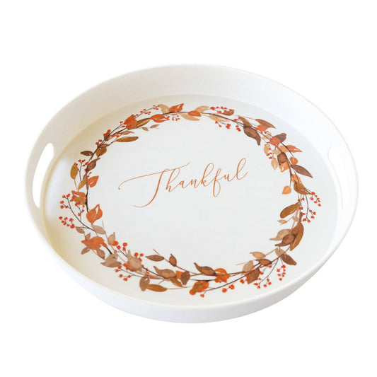 Thankful Wreath Reusable Bamboo Round Serving Tray