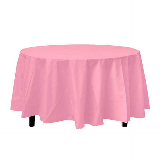 Round 84 In. Pink Premium Plastic Tablecloth Disposable: Pink / 84 in. Round