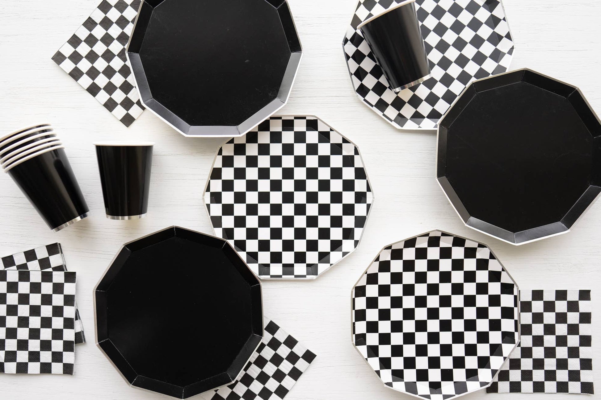 Black And White Signature Checker Napkins by Bonjour Fete. Timeless, graphic, and on-trend, they're perfect for any party theme. > Includes 20 party napkins > Size: 6.5" Square (Large - Lunch Size) > 3-ply paper napkins > Premium soy-based ink > FSC Certified Paper, eco-conscious materials >