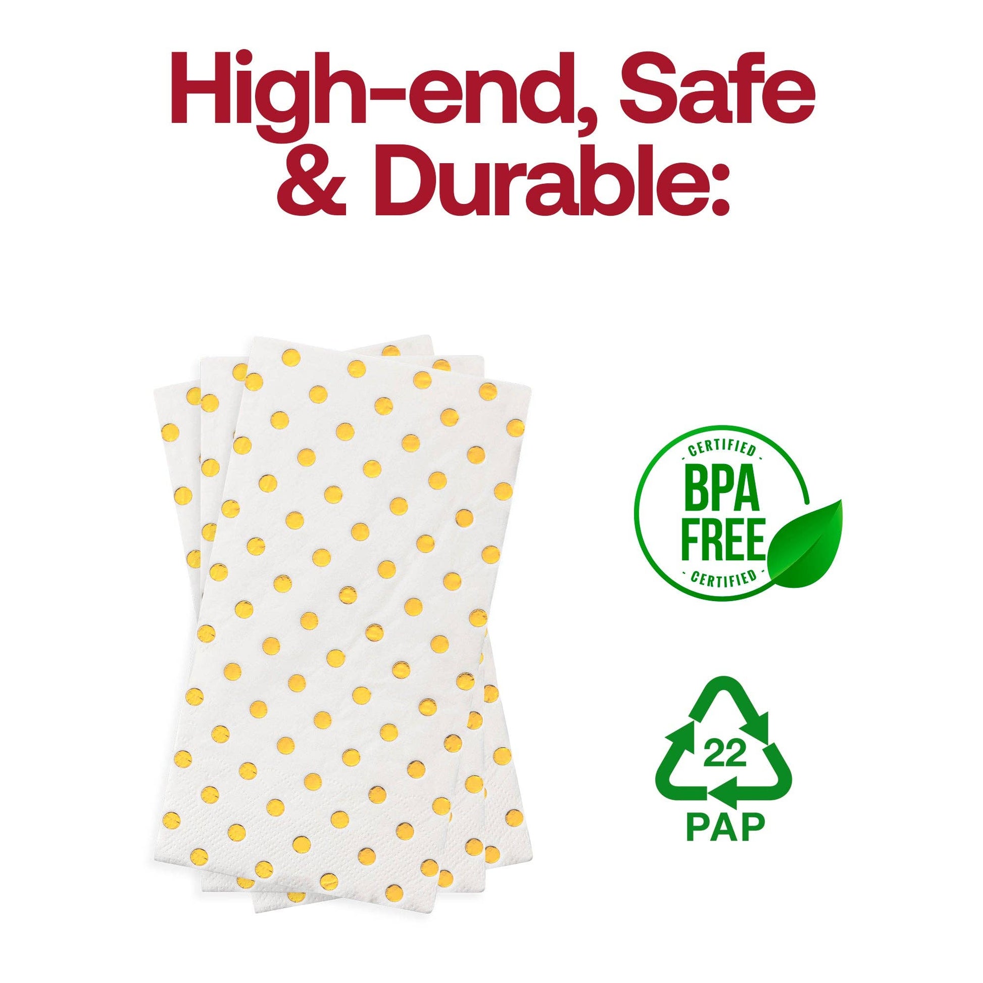 White with Gold Dots Paper Dinner Napkins - 50 pcs