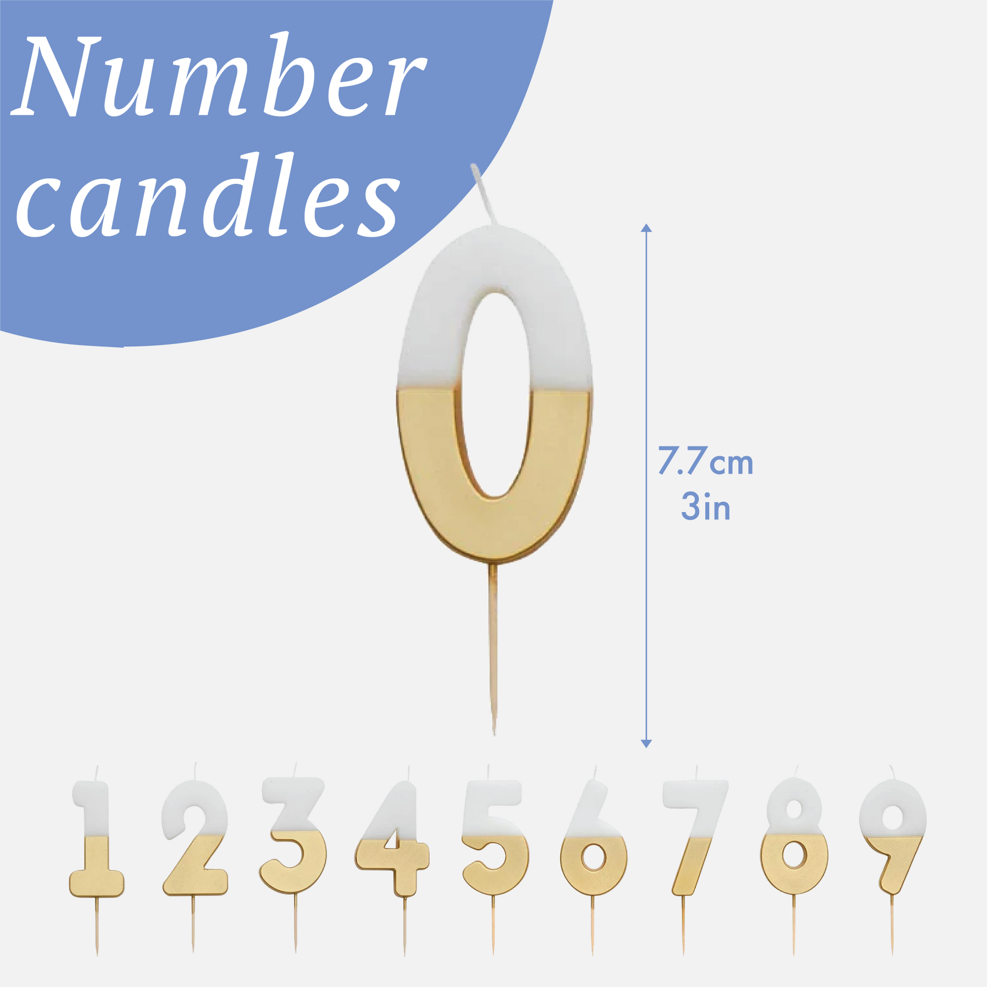 White and gold number candles create a classy and eye-catching addition to any birthday cake.